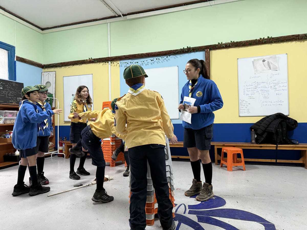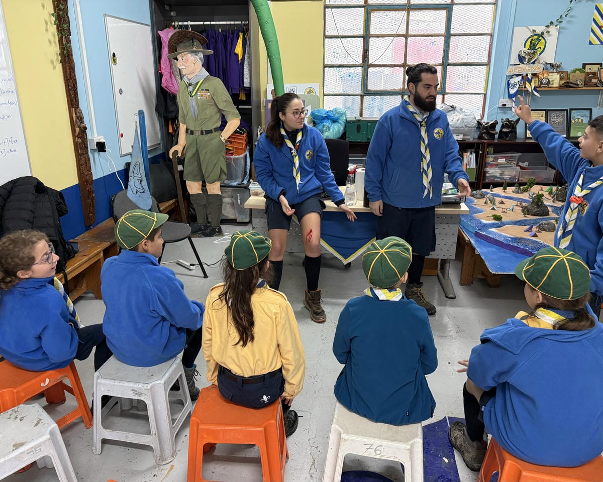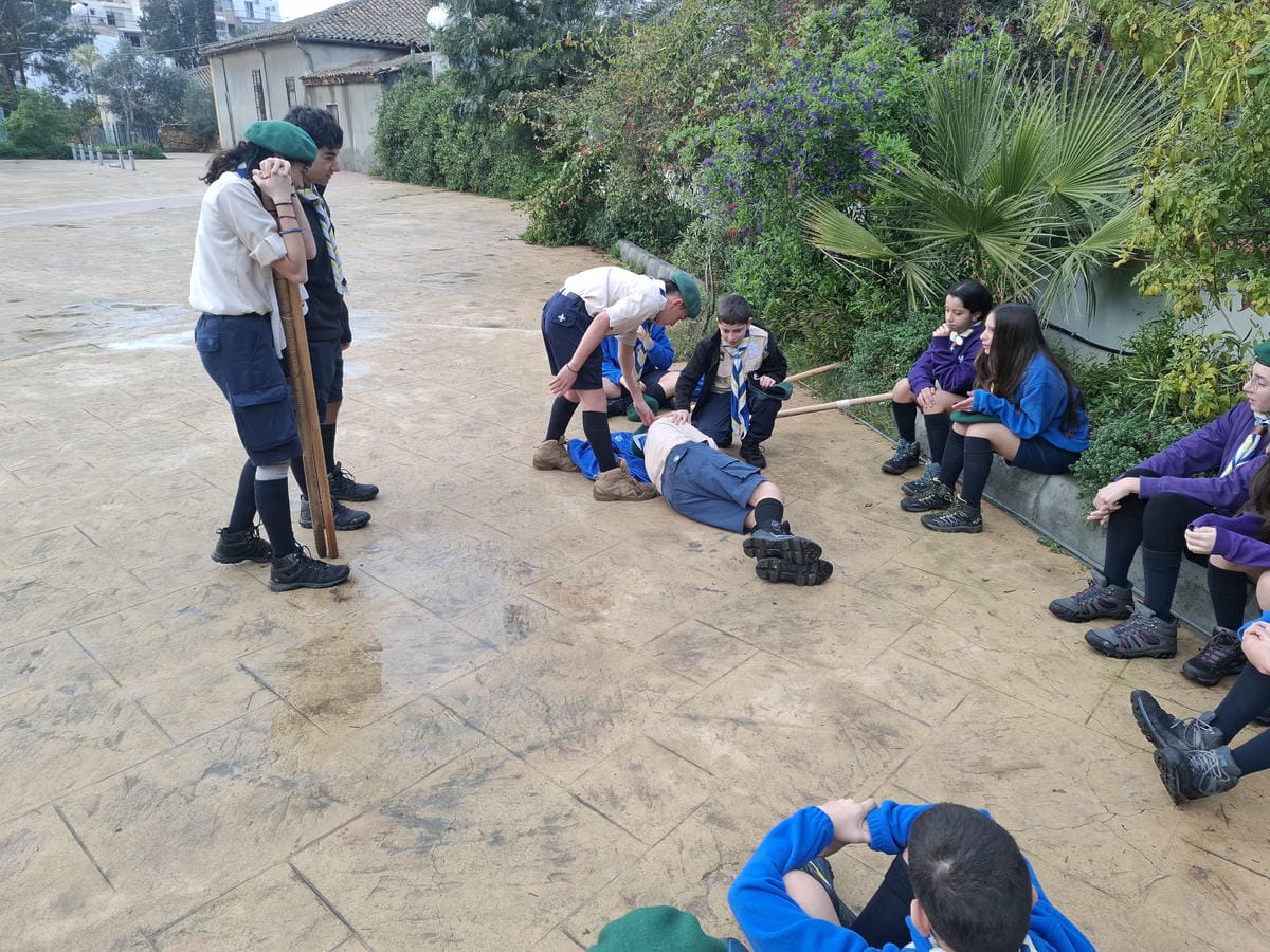 🟡 Αγέλη Λυκοπούλων: Συνεχίζοντας την εκπαίδευσή μας στις Α’ Βοήθειες — όπως μας ζήτησε ο Αυγερινός — πραγματοποιήσαμε παιχνίδι βάσεων, ώστε τα παλαιότερα μέλη να θυμηθούν και τα νέα να μάθουν περιποίηση απλού τραύματος, επιδέσεις και μεταφορά τραυματία με «καρεκλάκι». Ακολούθησε παιχνίδι εμπέδωσης, όπου οι καλύτερες προσπάθειες ανταμείφθηκαν με κάρτες υλικών, με στόχο να εμπλουτίσουμε τα Λυκονήσια με νέες κατασκευές!