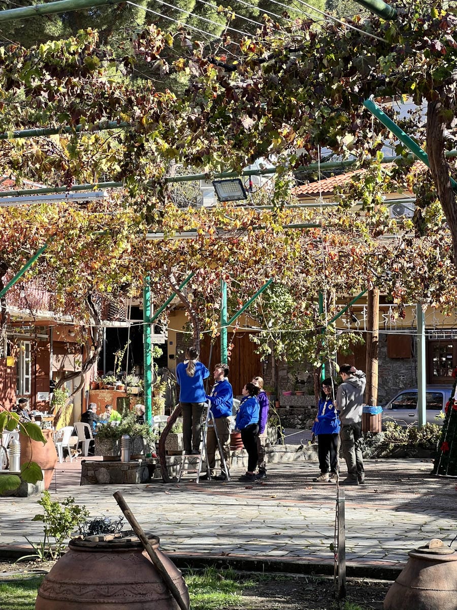 ✨ Ξεκινήσαμε με μια ζεστή κουβέντα με τον Κοινοτάρχη για το χωριό και, ως μικρό δείγμα ευγνωμοσύνης για την εξαιρετική φιλοξενία, βοηθήσαμε στον χριστουγεννιάτικο στολισμό της πλατείας. Στη συνέχεια, καθίσαμε στο καφενείο και μιλήσαμε με κατοίκους του χωριού, ακούγοντας ιστορίες και εμπειρίες — ιδιαίτερα από την εποχή της Αγγλοκρατίας και του Απελευθερωτικού Αγώνα.